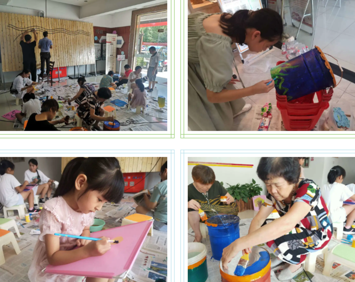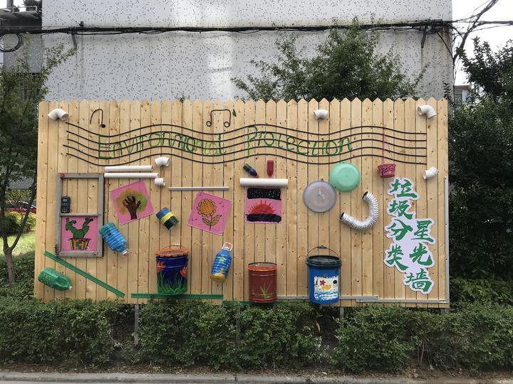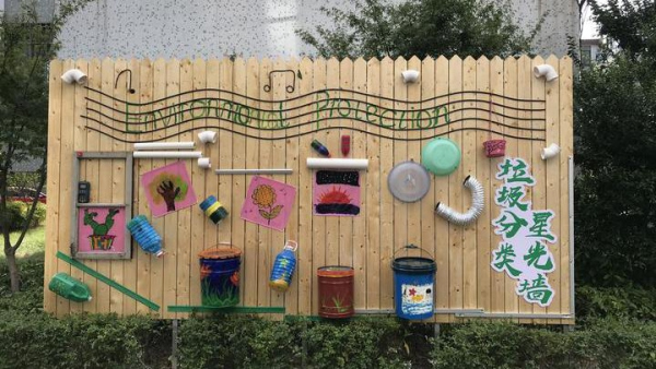 Previously, Qingfeng Community collected recyclables such as paint buckets and plastic bottles from residents by exchanging green plants. As soon as Mengxiaobei got the brushes and recyclables, they began to create enthusiastically. They painted the "goldfish bowl” on the paint bucket and "bonsai" on the waste window frame, and they made the "smiling face" composed of waste washbasins and pipes. A large number of recyclable materials have turned into valuable works, and they are affixed on the "Star Wall".