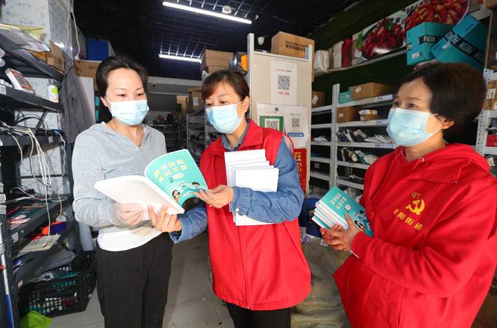 Huzhou distributes anti-pandemic handbooks to local residents (Photo/Wang Jiehan)