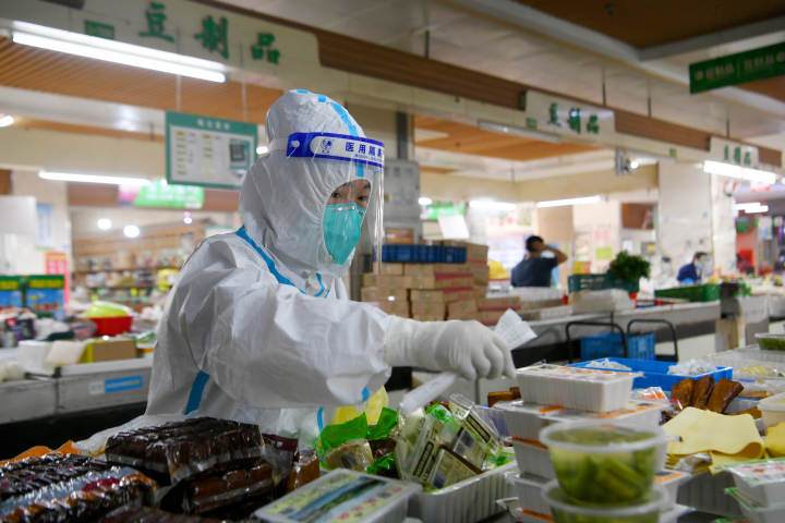 Staff conduct disinfection measures to ensure food safety for local residents (Photo/Hu Jianqiang)