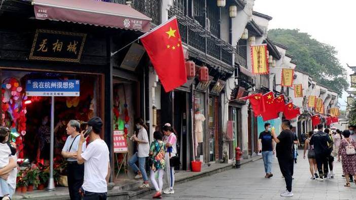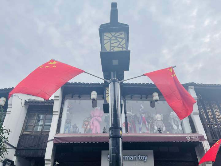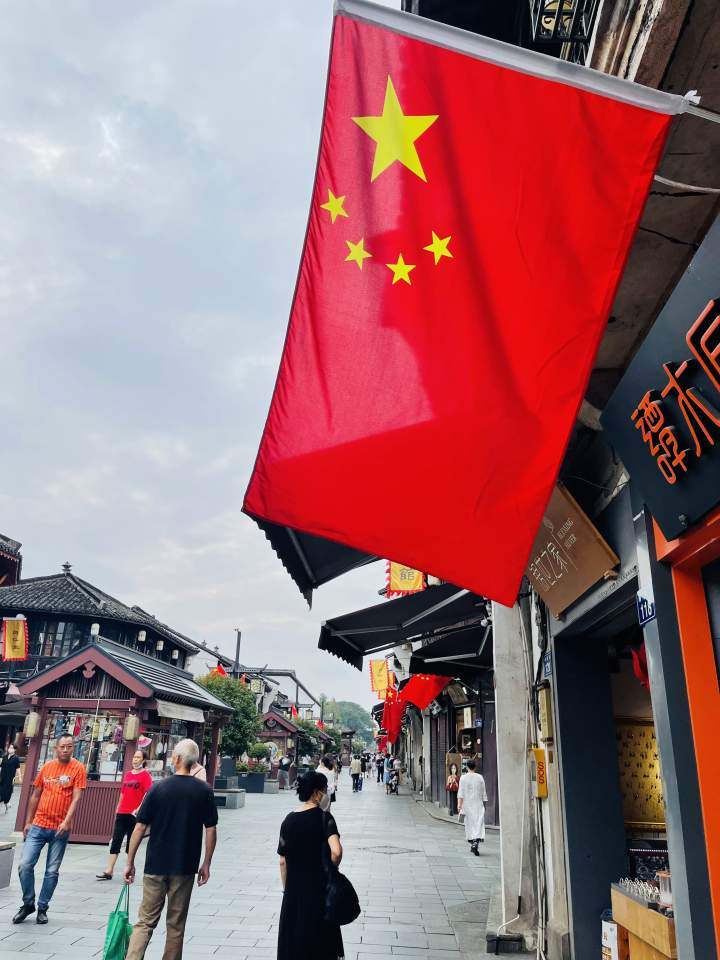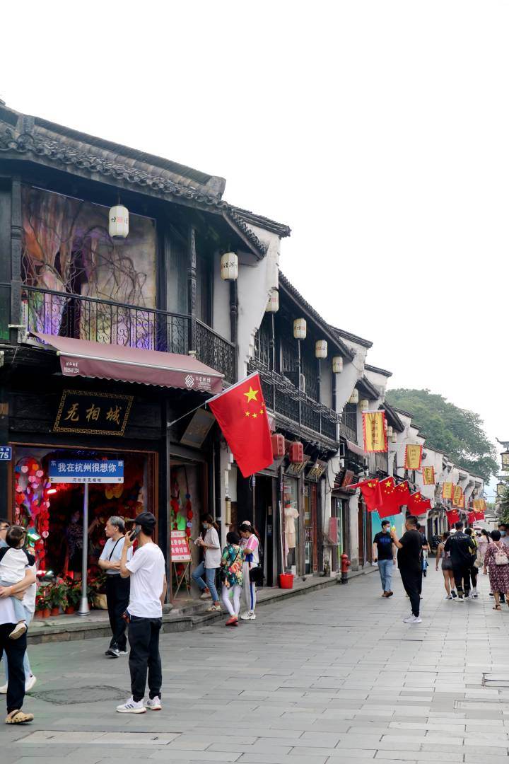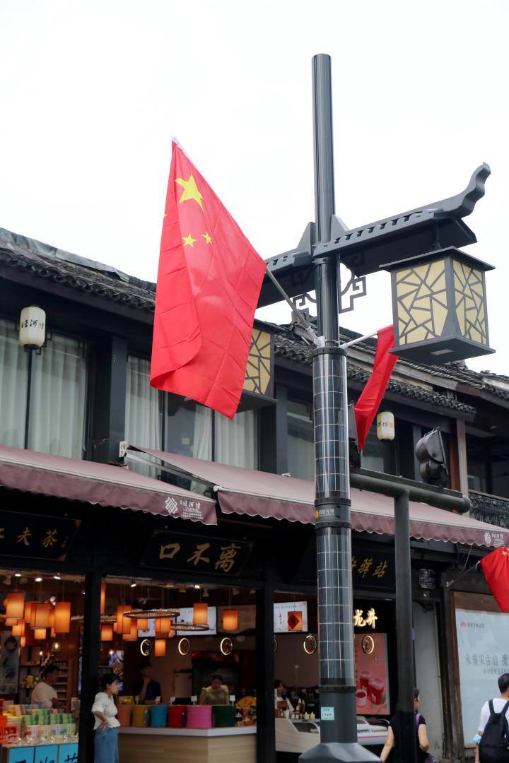 Recently, the national flag fluttered on the streets of Qinghefang in Hangzhou, becoming the most beautiful scenery on the streets of Hangzhou, with the atmosphere of the National Day Festival getting stronger and stronger.