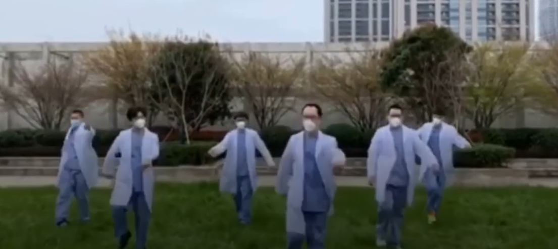 On March 8th, in Wuhan, the capital city of Hubei Province. A burst of music broke out on the lawn outside the residence of 171 medical teams from the second hospital of Zhejiang University, and six male doctors in white coats danced vigorously to send blessings on Women's day to their colleagues in Wuhan.