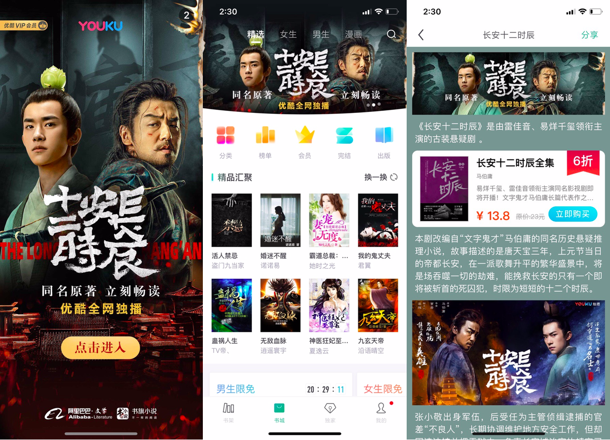 Youku has tapped resources across Alibaba’s ecosystem to promote the series, including full-screen advertisements on about a dozen mobile apps, including e-commerce siteTaobao, music-streaming appXiamiand ticketing-platformDamai. Alibaba’s Shuqi app, which focuses on web-based novels, launched a dedicated page for the original book by Ma Boyong, while Alifish, the firm’s cross-platform licensing business unit, is helping the series develop official merchandise as its exclusive licensing partner.
