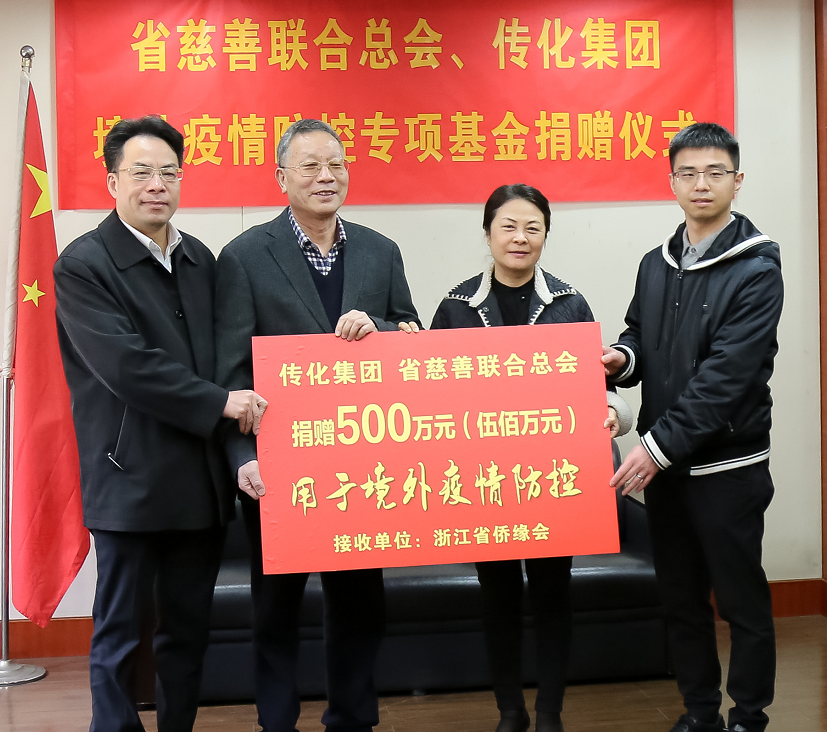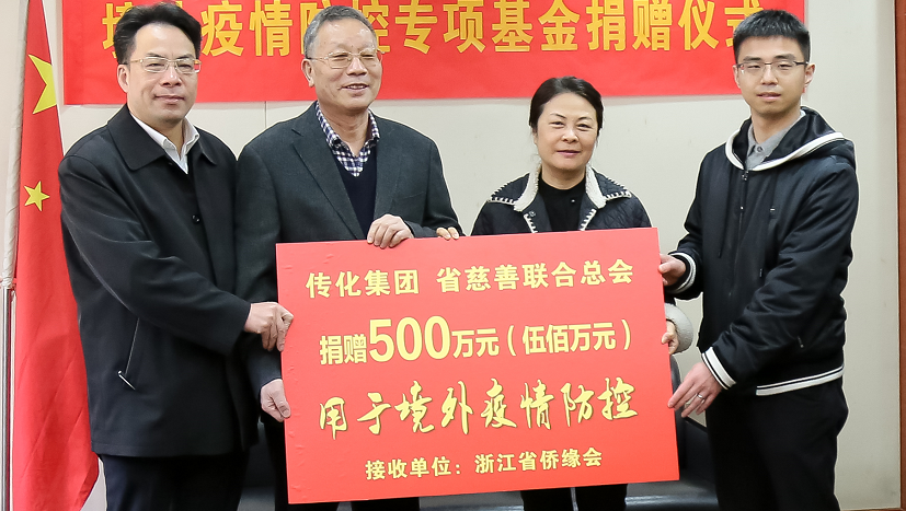 3月30日下午,省慈善联合总会联手传化集团向“浙江海外侨胞抗疫关爱基金”捐款500万元捐赠仪式在省侨联会议室举行。