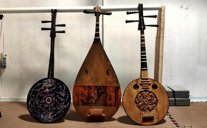 In his photographic studio, there are more than 10 kinds of musical instruments including pipa, Yueqin, harp and drum which are hand-made by himself.