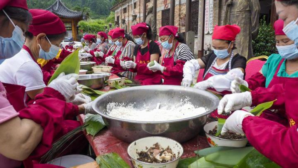 On June 21, more than 40 villagers gathered at the Gaoyan Village of Jingning She Autonomous County to make celebrations for the Dragon Boat Festival.