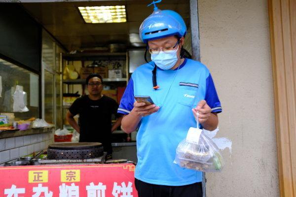 Chen Jian, having been an "Eleme Blue Knight" for more than one year and having delivered more than 20,000 orders of food, humorously calls himself "the king of delivery men" in the West Lake District.