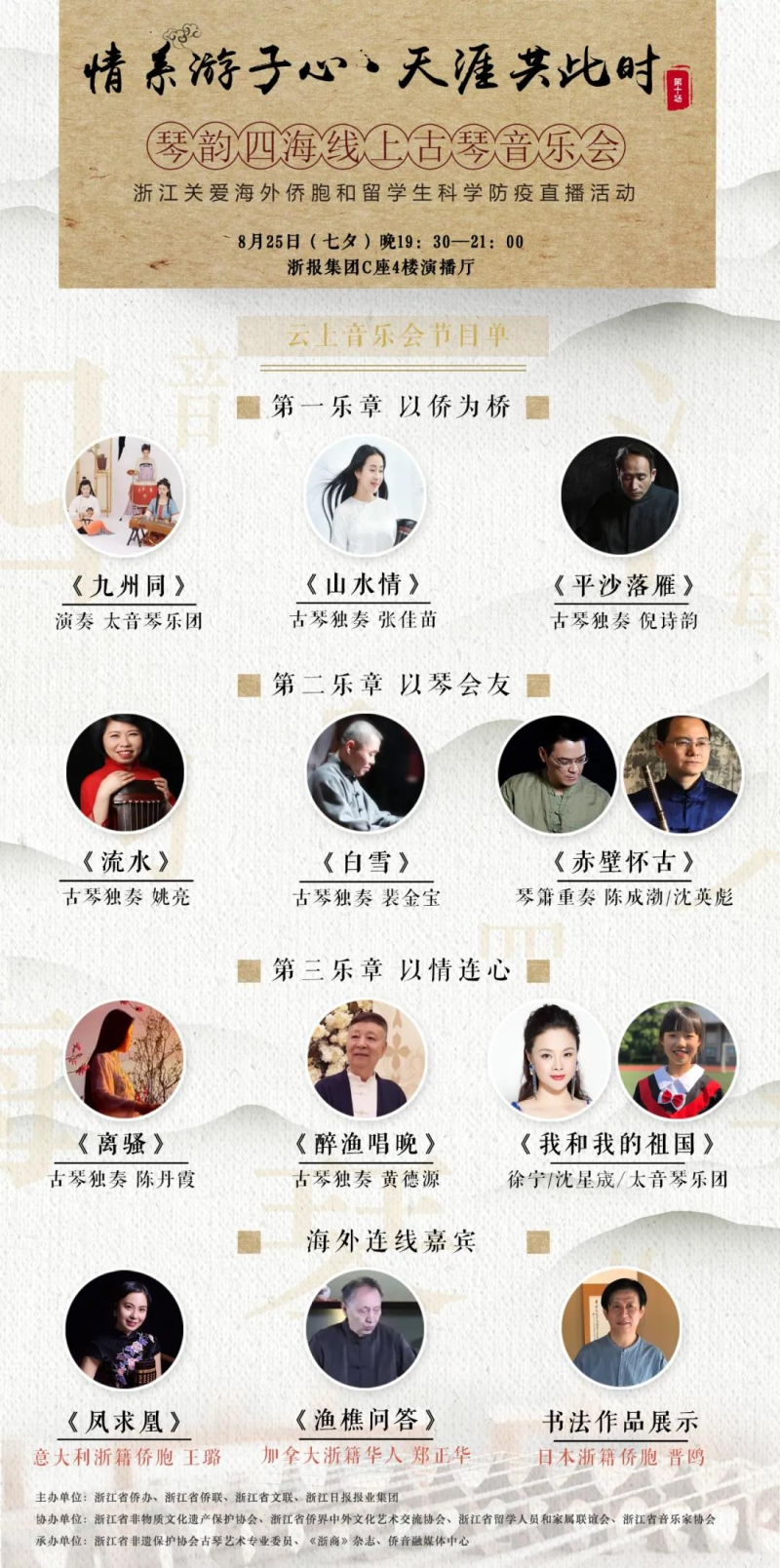 An online Guqin concert “The Moment for All” is to be held for the overseas Chinese people. Love from hometown will be delivered to overseas Chinese through the excellent classical music performed by well-known Guqin artists.