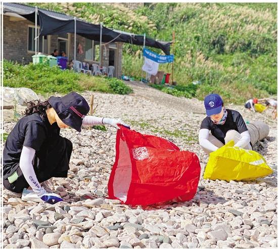 Eight months ago, the Lishi Beach of Xifeng Bay on Qingbang Island in Putuo District was occupied by pieces of garbage. But now it has become very beautiful and clean.