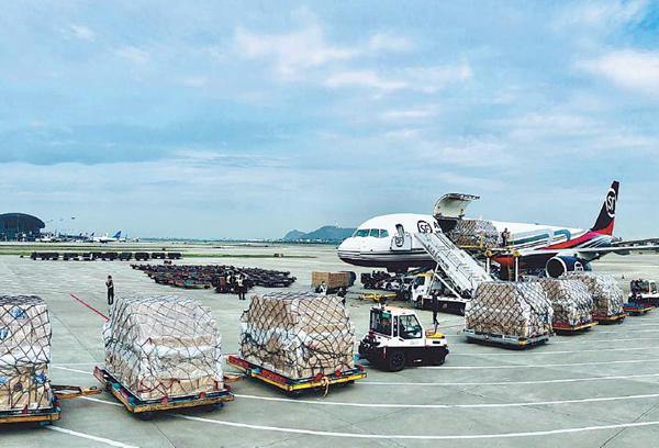 Cargo is loaded onto an aircraft of SF Airlines, China's largest air cargo carrier, at the Hangzhou International Airport in Hangzhou, capital of Zhejiang province, on March 25. (Photo via China Daily)