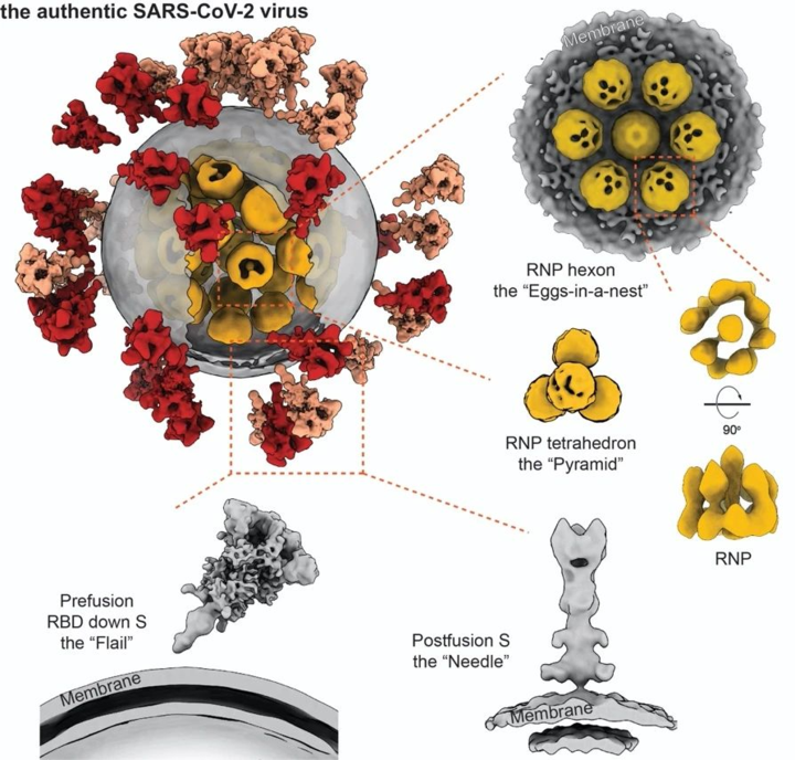 In addition, the natural configuration and distribution characteristics of spike protein as well as the structure and molecular assembly mechanism of the ribonucleoprotein complex of the virus were also revealed in detail, which is of great significance for further understanding of the biological characteristics of COVID-19, vaccine design, and antiviral drug development.