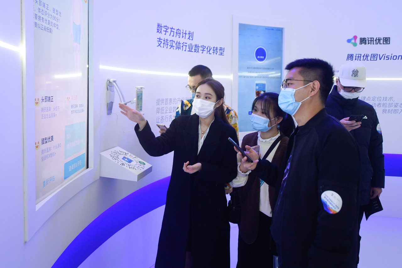 Visitors learn about a body evaluation application at the booth of Tencent during the Light of Internet Expo of the 2020 World Internet Conference (WIC) in Wuzhen, east China's Zhejiang Province, Nov. 22, 2020. (Xinhua/Huang Zongzhi)