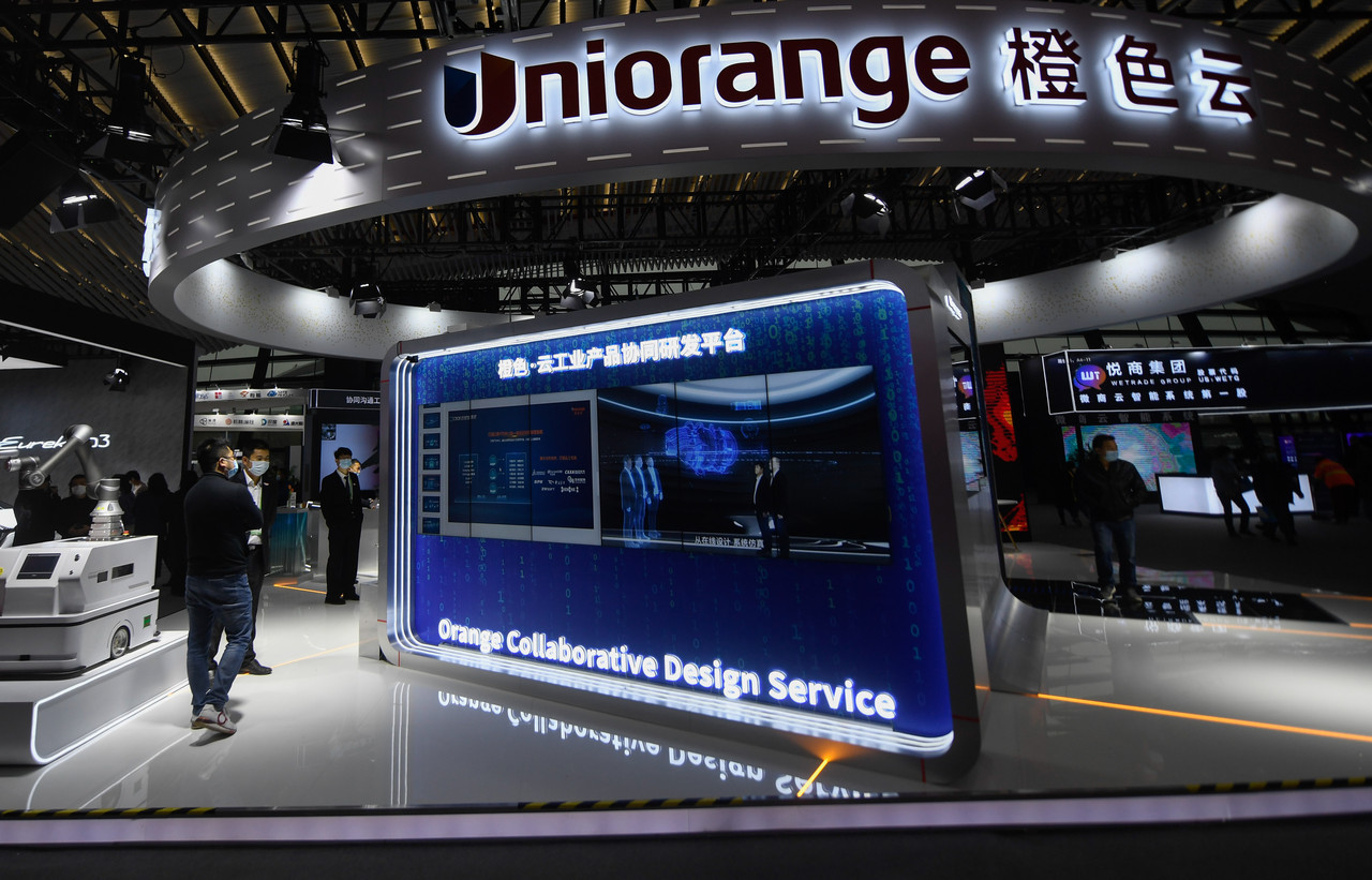 Visitors learn about Orange Collaborative Design Service at the booth of Uniorange during the Light of Internet Expo of the 2020 World Internet Conference (WIC) in Wuzhen, east China's Zhejiang Province, Nov. 22, 2020. (Xinhua/Huang Zongzhi)