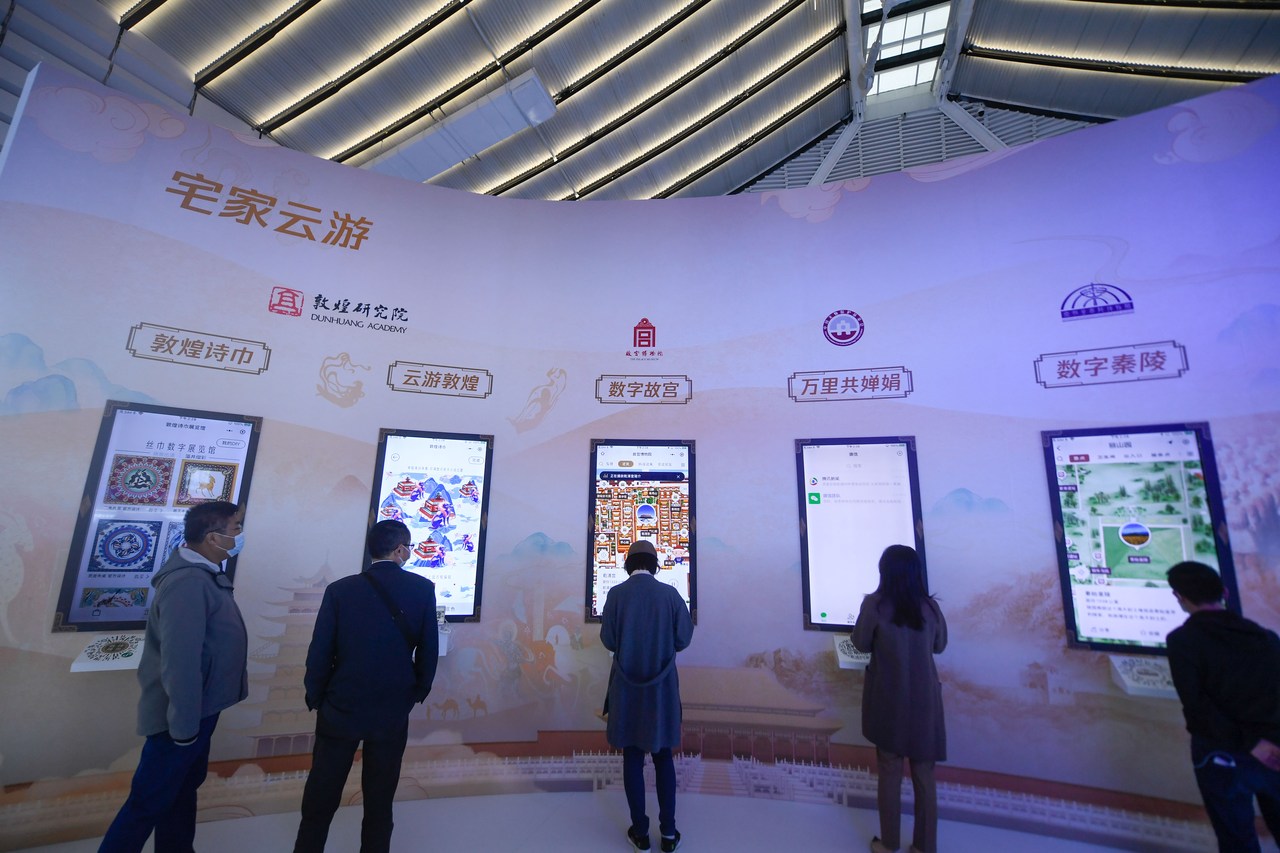 People try out cloud tourism devices at the booth of Tencent during the Light of Internet Expo of the 2020 World Internet Conference (WIC) in Wuzhen, east China's Zhejiang Province, Nov. 22, 2020. (Xinhua/Huang Zongzhi)