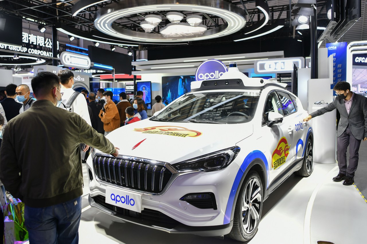 Visitors view a self-driving car during the Light of Internet Expo of the 2020 World Internet Conference (WIC) in Wuzhen, east China's Zhejiang Province, Nov. 22, 2020. (Xinhua/Li Xin)