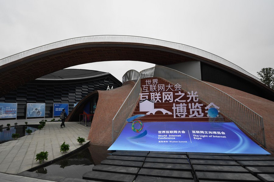 Photo taken on Nov. 22, 2020, shows the venue of the Light of Internet Expo of the 2020 World Internet Conference (WIC) in Wuzhen, east China's Zhejiang Province. (Xinhua/Huang Zongzhi)