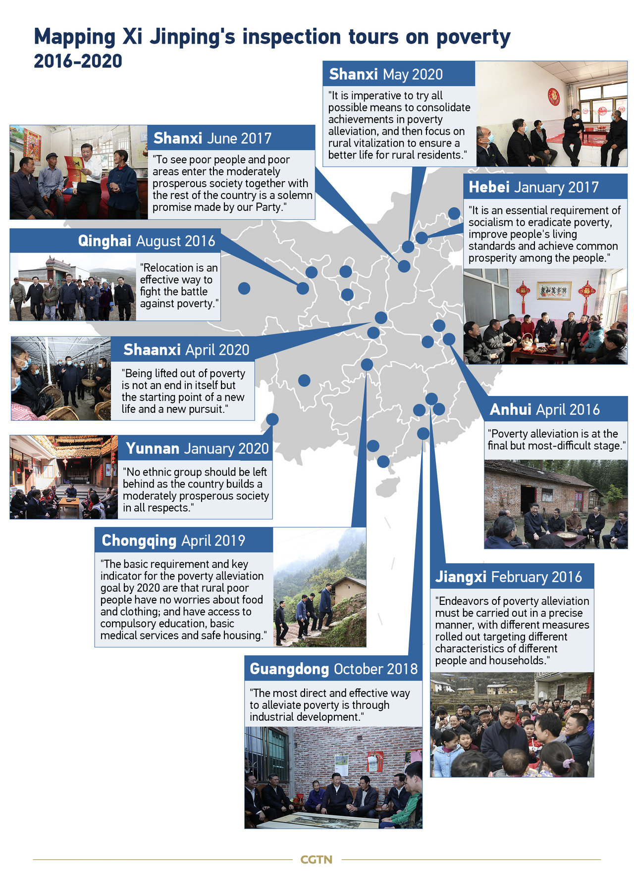 Since 2012, the Chinese president has gone down deep traveling to impoverished communities more than 50 times and learned about people's lives.