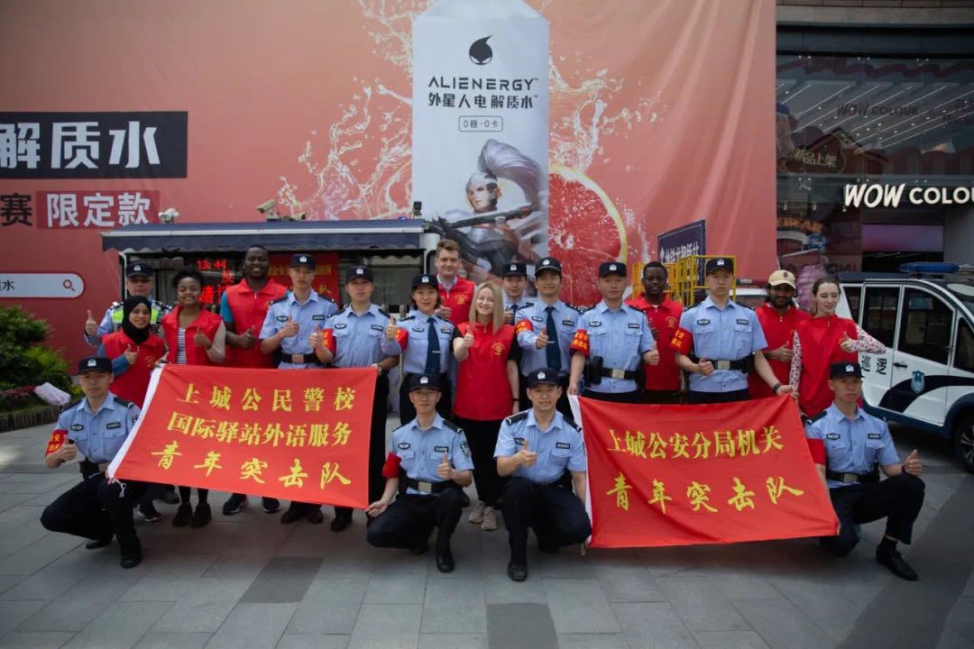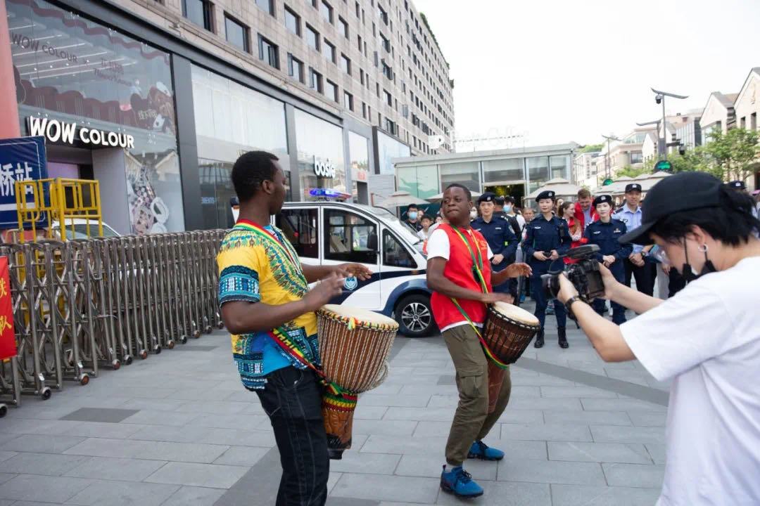 On the occasion of the third anniversary of the establishment of Shangcheng District Civil Police Academy (SCCPA) International Volunteer Center, during the Labor Festival holiday, international volunteers came wearing their red vests, carrying guitars, African drums and singing the melodious and moving songs.