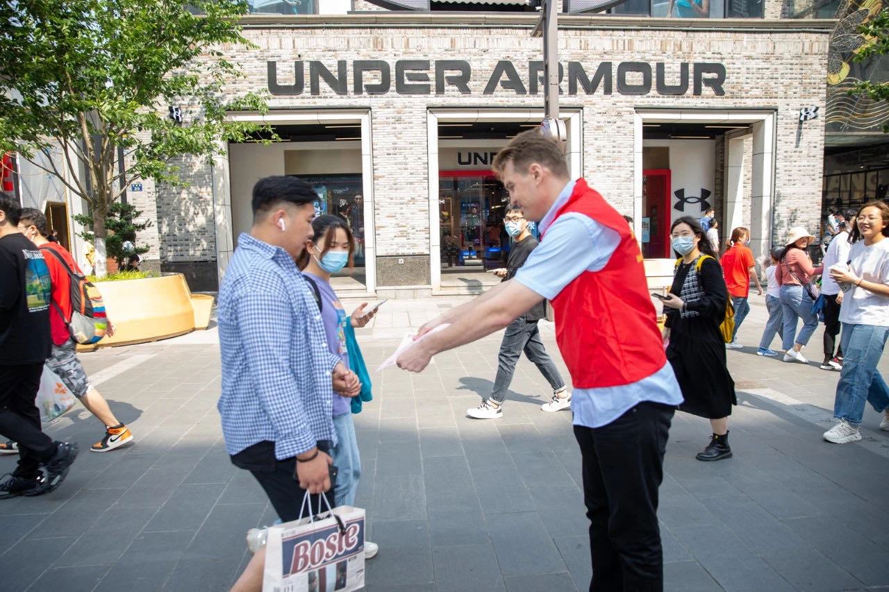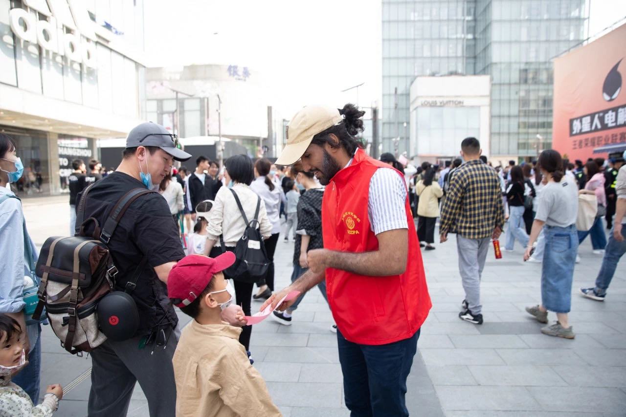 The Police Youth Commando Team made full utilization of the characteristics of the Hubin pedestrian street during the May Day holiday, such as large flow of people and good publicity effect, and quickly set up the anti-fraud campaign position. Given ensured safety and security for the visitors, the foreign language volunteers of the SCCPA International Volunteer Center sang self-made and familiar Chinese and English songs, and also performed African drum performances.