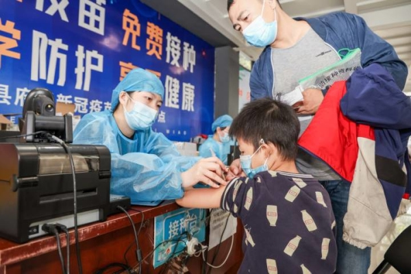 The first batch of people aged 3-11 were vaccinated with COVID-19 vaccine in Jinhua, Zhejiang Province(Photo/Zhejiang News)