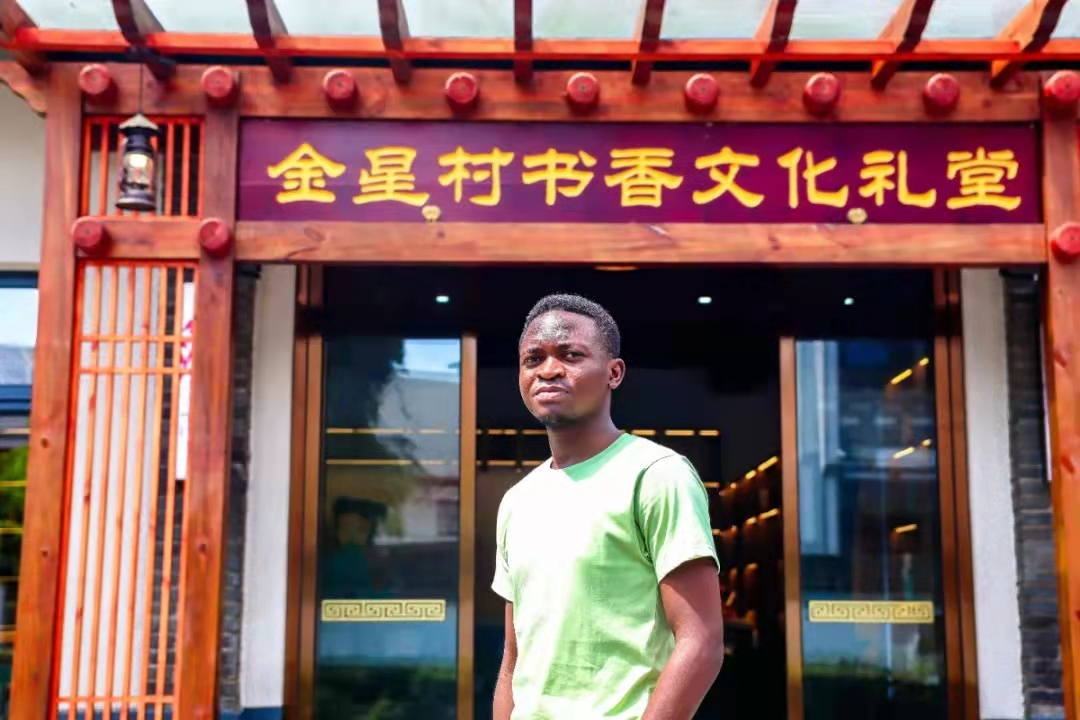 The author stands in front of a folklore cultural yard in the countryside of Zhejiang (Photo/Zhejiang University of Technology)