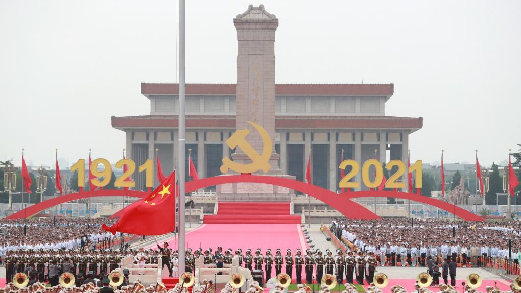 A flag-raising ceremony is held during a grand gathering celebrating the CPC centenary at Tian'anmen Square in Beijing, capital of China, on July 1, 2021. (Photo/Xinhua)