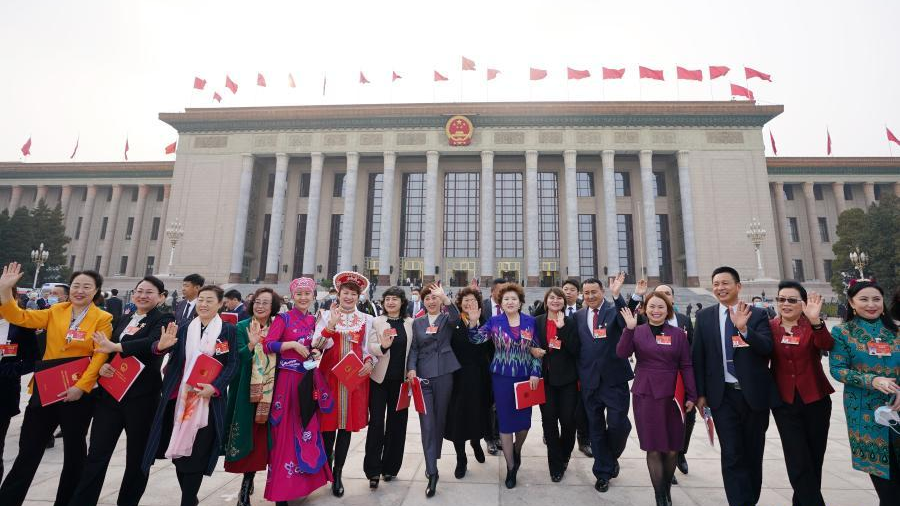 Deputies to the 13th National People's Congress (NPC) leave the Great Hall of the People after the closing meeting of the fourth session of the 13th NPC in Beijing, capital of China, March 11, 2021. (Photo/Xinhua)