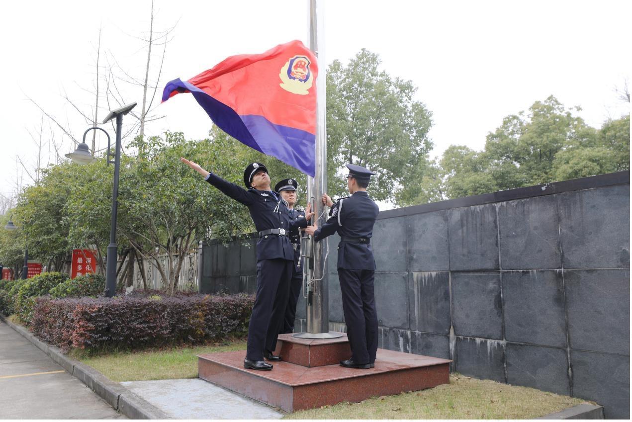 At 9:30 am, Jan 10, the police staff of Hangzhou Immigration Inspection lined up neatly, accompanied by the passionate and majestic "Police Anthem of The Chinese People's Police", the police flag carrying honor and mission rose slowly and fluttered in the wind. All comrades stood in strict and solemn manner to salute the police flag.