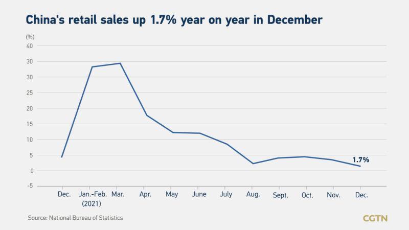 The retail sales in 2021 rose by 12.5 percent, according to the NBS. The two-year average growth stands at 3.9 percent.