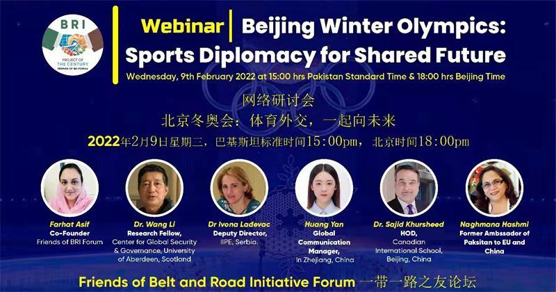 These were the remarks by the speakers sharing their views during the Webinar on "Beijing Winter Olympics: Sports Diplomacy for Shared Future" organized by Friends of BRI Forum. While moderating the session, Farhat Asif, Co-Founder of Friends of BRI Forum, highlighted that the Webinar had been organized to engage in intellectual discourse on China's vision of sports diplomacy in the context of the Olympic games.