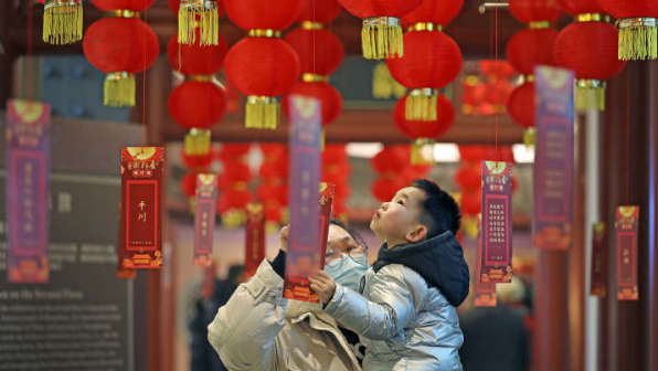 Children are guessing the lantern riddles (Photo/Zhejiang News)
