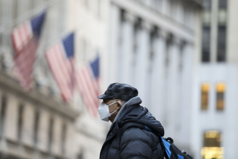 A man wearing a face mask walks on a street in Manhattan of New York, the United States, Jan. 19, 2022. (Xinhua/Wang Ying)