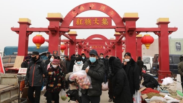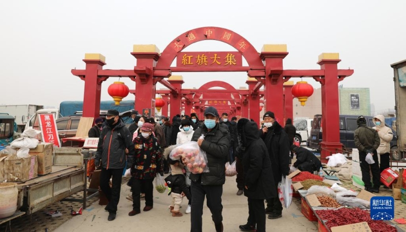 Farmers shop for food at a market in Yingkou city, northeast China's Liaoning Province on Jan. 15, 2022. (Xinhua/Zhao Yong)