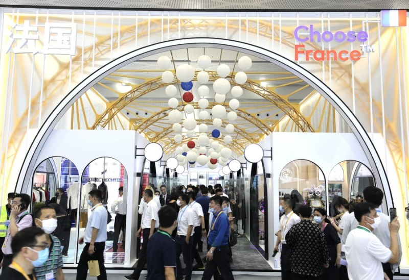 People visit the France Exhibition Area in the Fashion Life Exhibition Hall of the first China International Consumer Products Expo in Haikou, capital of South China's Hainan province, May 7, 2021. (Photo/Xinhua)