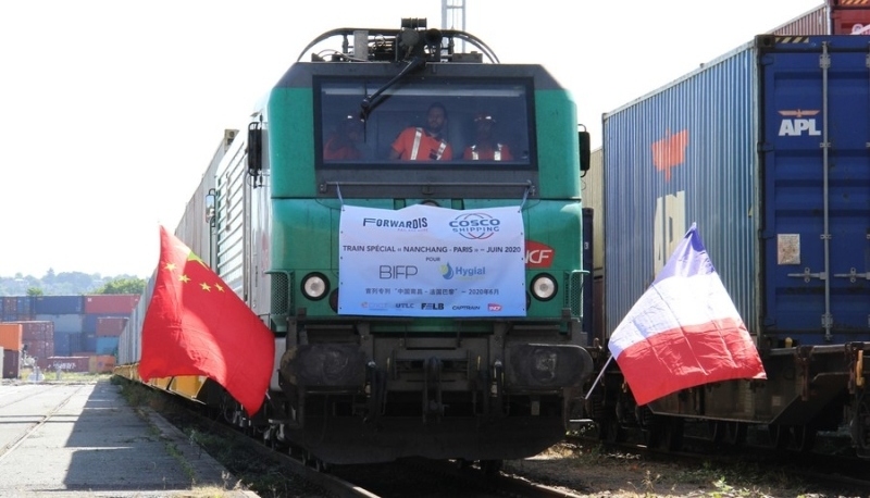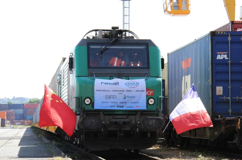 The China-Europe cargo train arrives at Paris, France, June 23, 2020. (Photo/Xinhua)