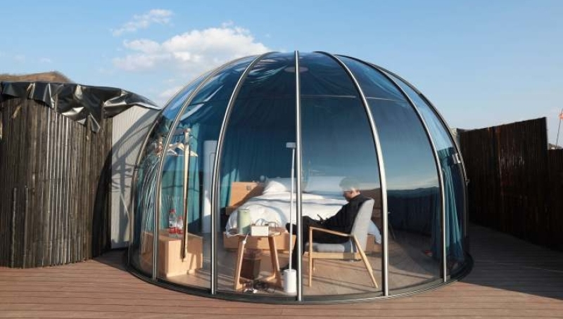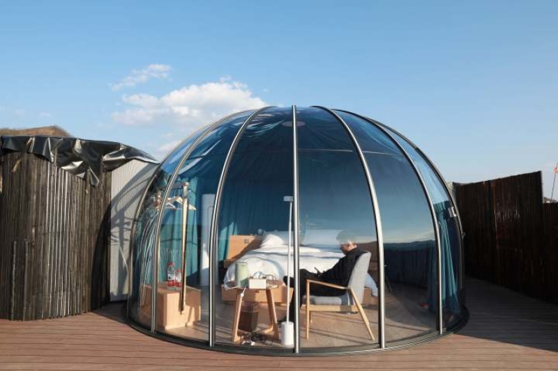 The inside of the bubble house. (Photo/Zhejiang News)