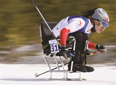 Li Panpan, born and raised in Hangzhou, Zhejiang province, won a bronze medal at Para cross-country women's long distance sitting on March 6. China's Yang Hongqiong and American star Oksana Masters took the first two places.