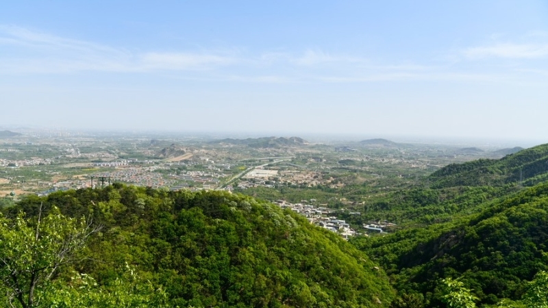 Photo taken on April 29, 2021 shows the scenery of Panshan Mountain scenic resort in Jizhou District, north China's Tianjin. (Xinhua/Sun Fanyue)
