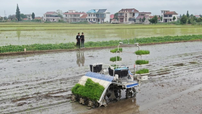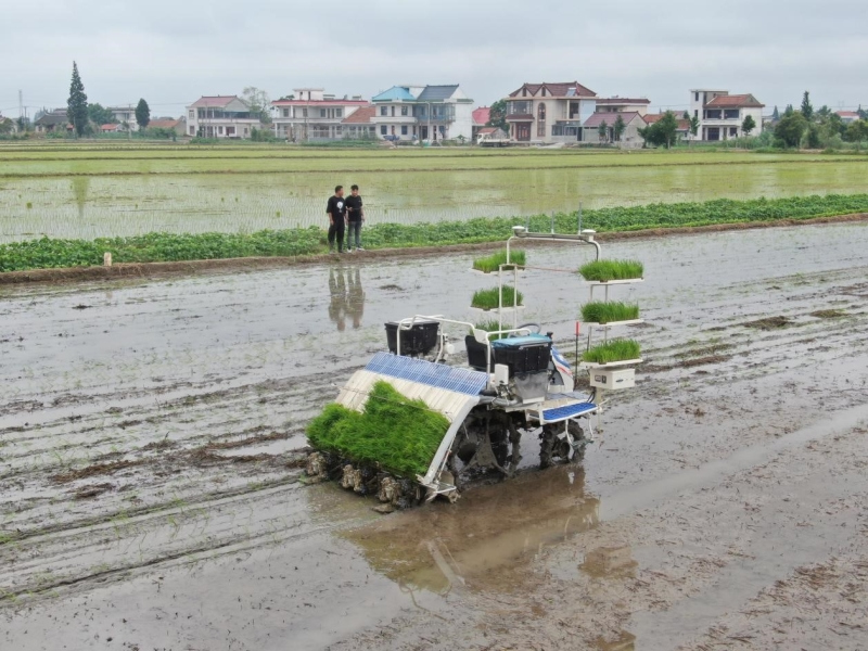 An unmanned rice transplanter equipped with the BeiDou Navigation Satellite System works in a field in Tongzhou district, Nantong city, east China’s Jiangsu province, July 2, 2021. (People’s Daily Online/Xu Congjun)