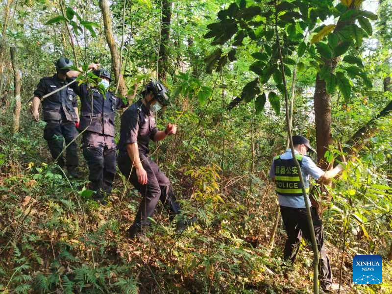 Rescuers set out to the plane crash site of Tengxian County, south China's Guangxi Zhuang Autonomous Region, March 21, 2022. (Photo/Xinhua)