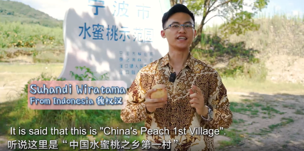 Together they explore the peach fair and the Fenghua Peach Intangible Cultural Heritage Practice Base where they learn about over 150 juicy and sweet peach species.