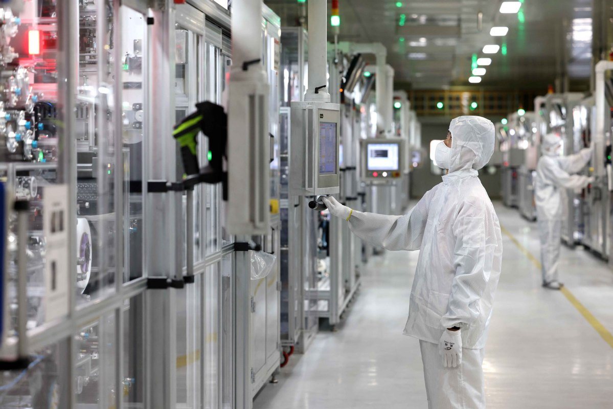 Technicians work at a production line in a power battery firm in Hefei, Anhui province on July 17, 2022. (Photo/Xinhua)