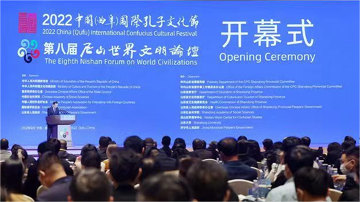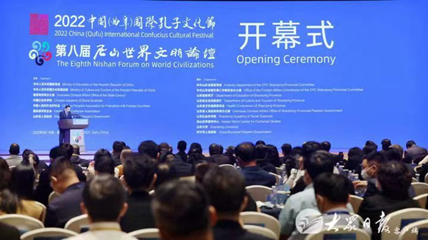 The opening ceremony for 2022 China (Qufu) International Confucius Cultural Festival and the eighth Nishan Forum on World Civilizations was held in Qufu, a county-level city in Jining, Shandong province on Sept 27, attracting more than 600 professors, experts and foreign envoys across the world to attend online and offline.