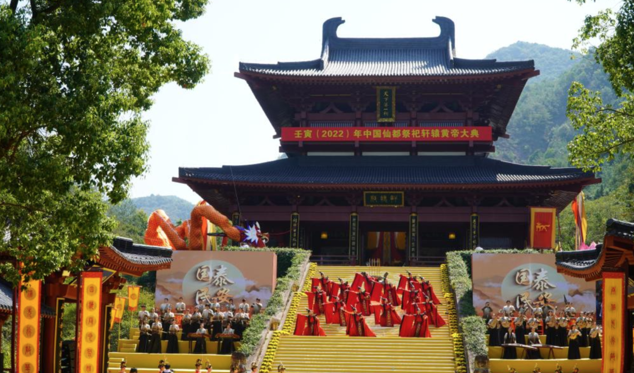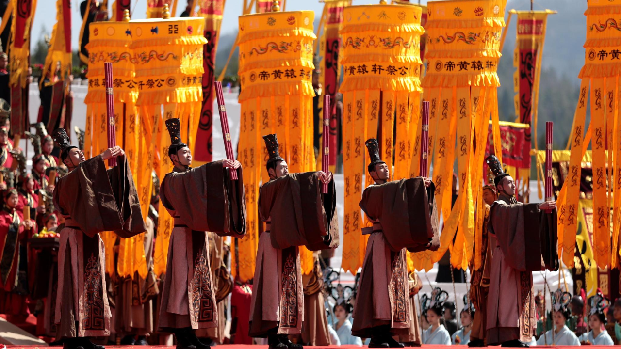 A grand ceremony paying tribute to Huangdi, or the Yellow Emperor, who is considered a common ancestor of all Han Chinese, is held in Jinyun County, east China's Zhejiang Province, on Oct. 4, 2022. The worship for the Yellow Emperor can be traced back to the Eastern Jin Dynasty (317–420), making it a ritual with a history of over 1,600 years.