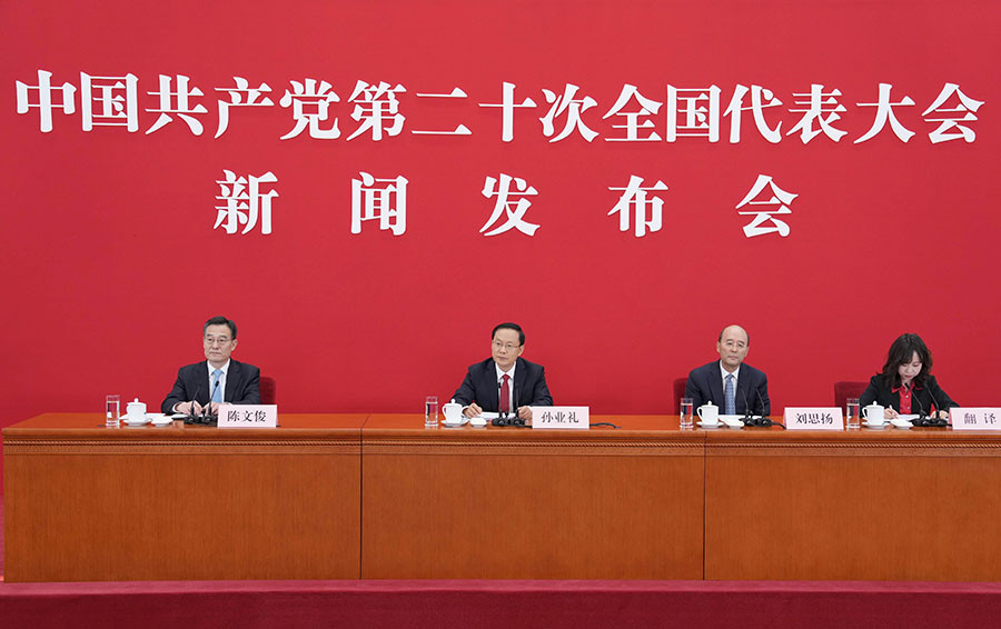 Sun Yeli, spokesperson for the 20th National Congress of the Communist Party of China (CPC), holds a press conference at the Great Hall of the People in Beijing, capital of China, on Oct. 15, 2022. (Xinhua/Cai Yang)