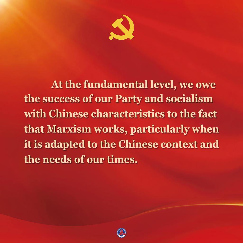 — At the fundamental level, we owe the success of our Party and socialism with Chinese characteristics to the fact that Marxism works, particularly when it is adapted to the Chinese context and the needs of our times.