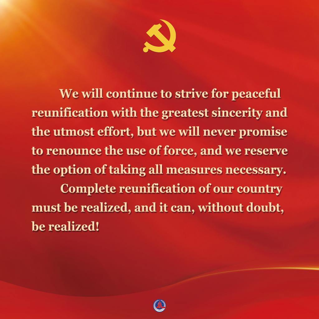 — We will continue to strive for peaceful reunification with the greatest sincerity and the utmost effort, but we will never promise to renounce the use of force, and we reserve the option of taking all measures necessary.