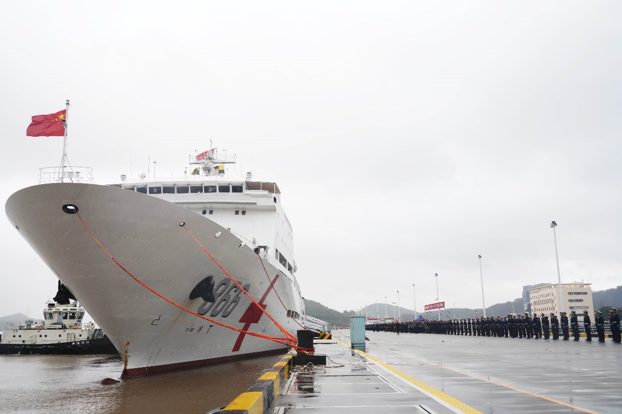 Chinese naval hospital ship Peace Ark has arrived home port in Zhoushan, East China's Zhejiang province, on Nov 29. (Photo/ Sun Fei)