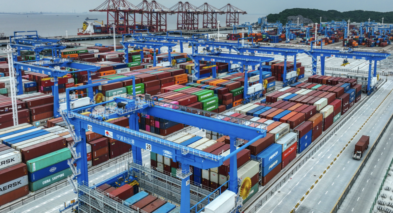 Containers are stored at Ningbo Zhoushan Port, Zhejiang province. (Photo/ YAO FENG /CHINA DAILY)