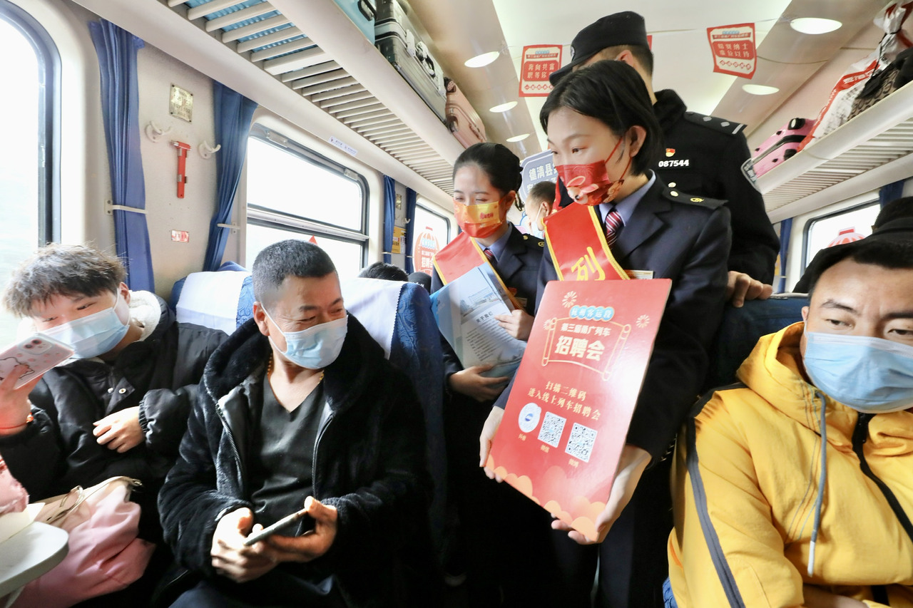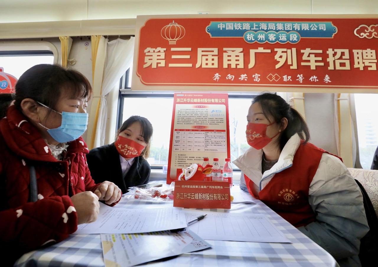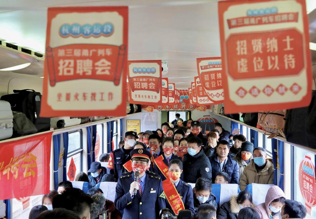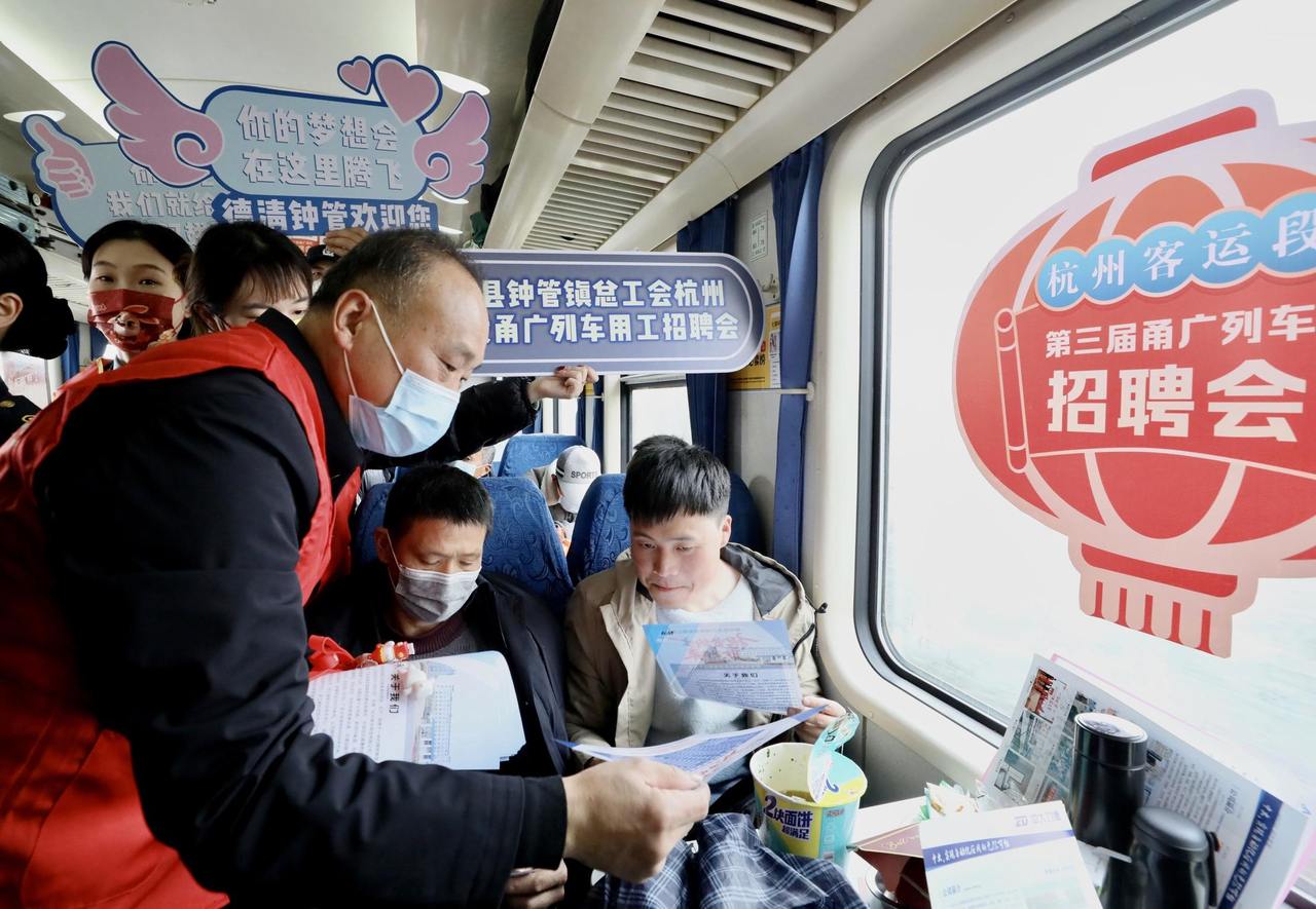 Zhejiang Federation of Trade Unions, together with the Hangzhou Passenger Section, held a job fair for enterprises on Yongguang Line for the third consecutive year to help enterprises resume work and production. It creates a recruitment platform for enterprises on the train, providing job opportunities for passengers, and enabling passengers in need to find jobs on the train.