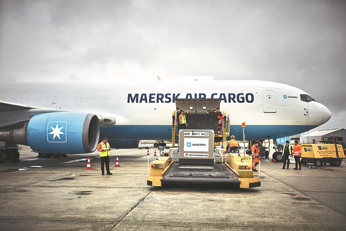 Employees of Maersk Air Cargo, a unit of A.P. Moller-Maersk, load goods onto an aircraft departing for Hangzhou, Zhejiang province, at an airport in Billund, Denmark on March 20. (Photo/China Daily)